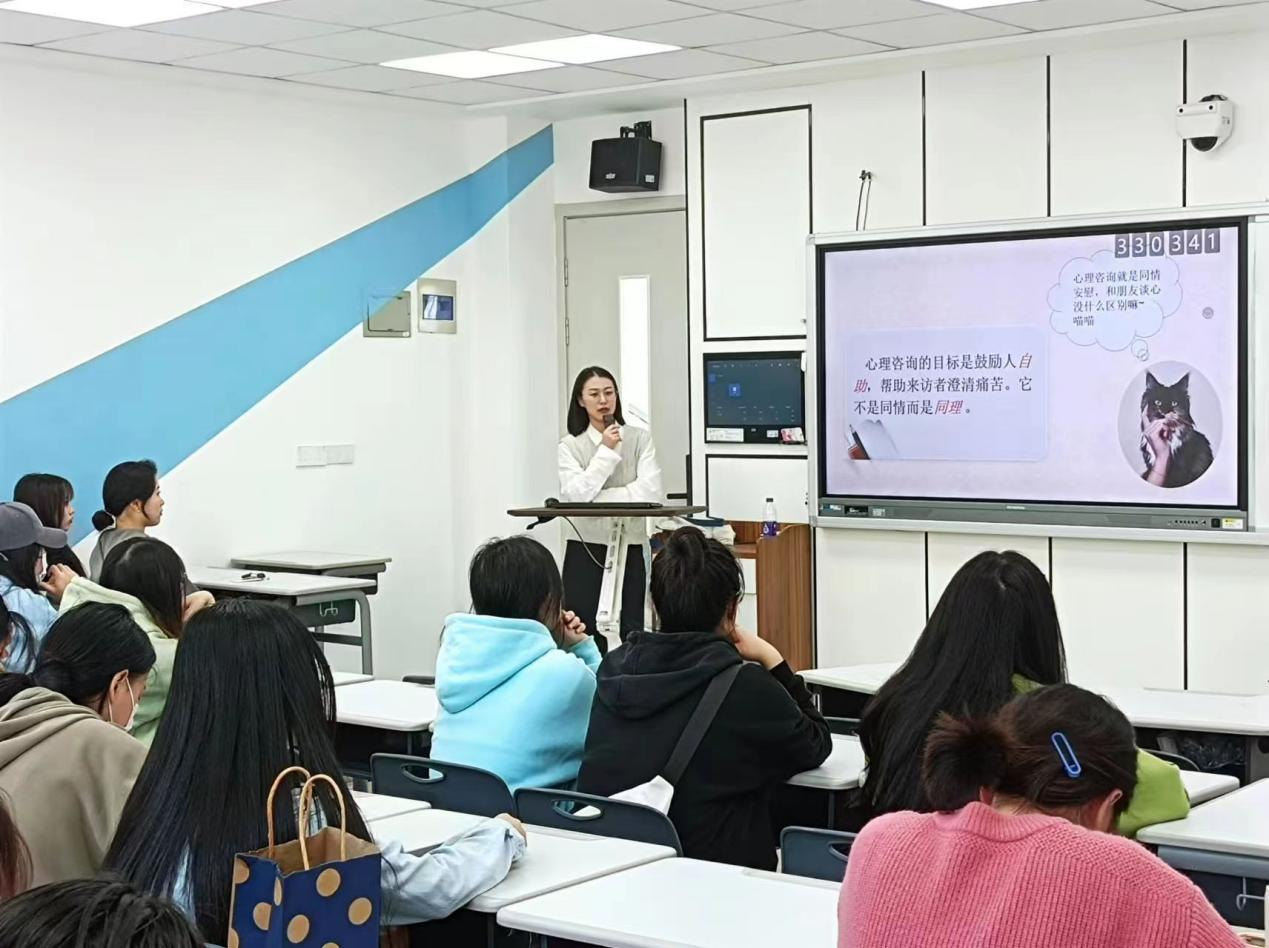 培训会上,陈嘉怡老师强调了班级心理委员的重要性。其次就本次培训内容分为走进心理咨询、心理委员工作务实、基本能力测试、重点关注人群四个部分,分别做了讲解。