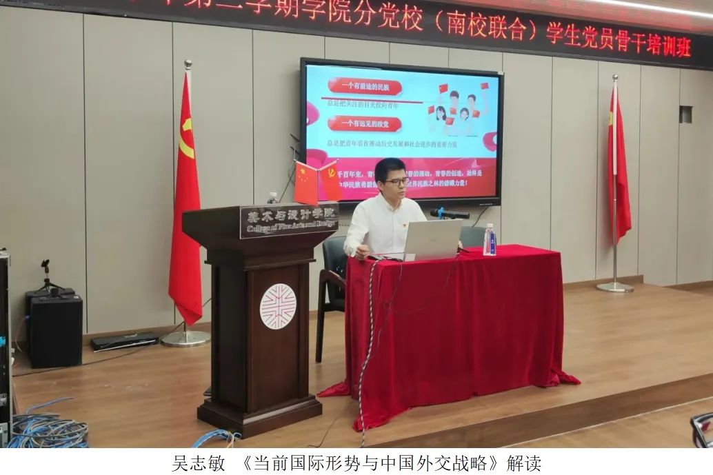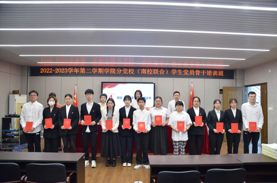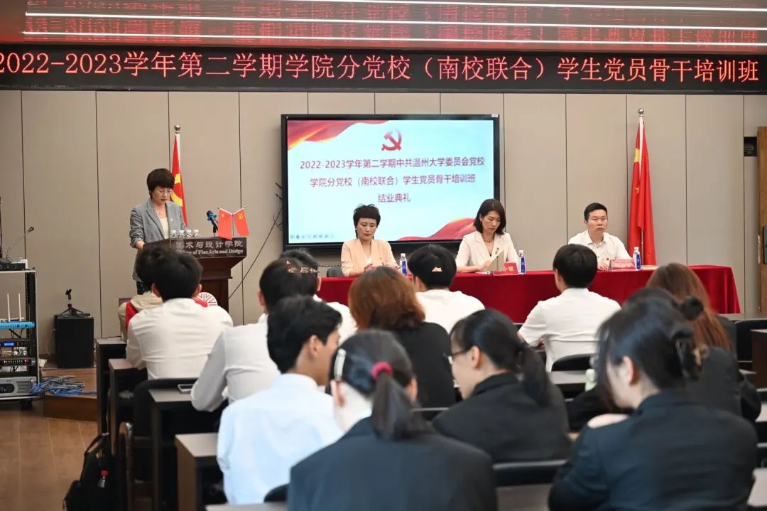 为进一步加强大学生党员骨干队伍建设,提高学生党支部的工作水平,充分发挥学生党支部的战斗堡垒作用,提升学生党员骨干党建工作业务能力,中共温州大学委员会党校美术与设计学院分校承办了2022-2023学年第二学期(南校联合)学生党员骨干培训班。本次培训班通过集中授课、小组讨论、考核测试三种形式开展,课程内容围绕党的二十大《中国共产党章程》解读、当前国际形势与中国外交战略解读、《中国共产党党支部工作条例》(试行)《中国共产党党员教育管理条例》解读、党员组织关系转接、发展党员细则解读、如何开展党内组织生活等多个方面展开,提升了学生党员骨干自身党性修养和党务工作能力。精彩回顾5月23日下午,中共温州大学委员会党校学院分党校(南校联合)学生党员骨干培训班结业典礼顺利举行。出席本次结业典礼的领导有教育学院党委副书记、分党校副校长彭小媚老师,化学与材料工程学院党委副书记、分党校副校长周敬业老师,机电工程学院党委副书记、分党校副校长黄玮老师。本次结业典礼由美术与设计学院党委副书记、分党校副校长叶如芳老师主持。在奏唱国歌后,由美术与设计学院的优秀学员代表谢宛含进行发言,分享了此次党员骨干培训班的感想感悟。她表示,身为党员骨干的我们在砥砺奋进的同时,更应当勤于反省自身、互相监督,保持积极昂扬的心态。在支部生活与工作中,守初心,养恒心、淬匠心,以最美“三心”,传承实干精神;以坚定的决心、信心和恒心,走好“必由之路”;以强大的志气、骨气、底气,用好“有利条件”。典礼最后宣读了本期培训班结业名单和优秀学员名单并颁发荣誉证书。至此,中共温州大学委员会党校学院分党校(南校联合)学生党员骨干培训班顺利结业。但探索永不止步,征途永无止境。希望培训班助力党员骨干努力做到勤学修德明辨笃实,知责于心、担责于肩、履责于行,努力发挥“树旗帜,立标杆,筑堡垒”的示范引领作用。