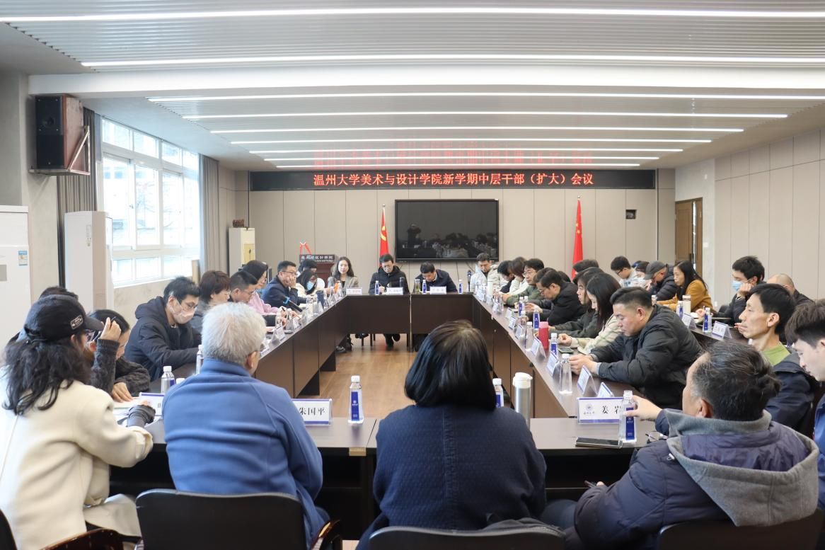 会上 ,各分管领导作本学期重点工作部署。叶正飞书记重点传达了学校相关会议精神。他指出,学科建设、博士点培育是学院实现跨越式发展的必由之路,今年是我院博士点培育的关键一年,全体中层干部及骨干教师要凝心聚力、群策群力,以高度的责任感和主人翁精神,全力以赴投入学科建设,实现个人成长和学院发展的共赢局面。他强调,近期我校将进行党代会、两委换届,学院要全面配合校党委换届工作,全体党员教师要统一思想、提高认识,准确把握会议要求和工作重点,以高要求指导党代会高质量组织和推进。胡文超副院长传达学校教学工作、招生工作会议精神,并针对专业认证推进、教改项目申报、一流课程建设、教学成果申报、国际合作开展等八个方面进行工作布署。顾任飞副院长结合我院实际情况就艺术点博士点申报指标点条件进行具体分析,重点对教师的科研项目申报、艺术创作入展、科研成果奖申报、研究生培养质量等提出要求,鼓励全体师生积极参与项目申报、学术交流以及高级别大赛和展览。叶如芳副书记就毕业生升学、就业工作、安全问题等作重点说明。