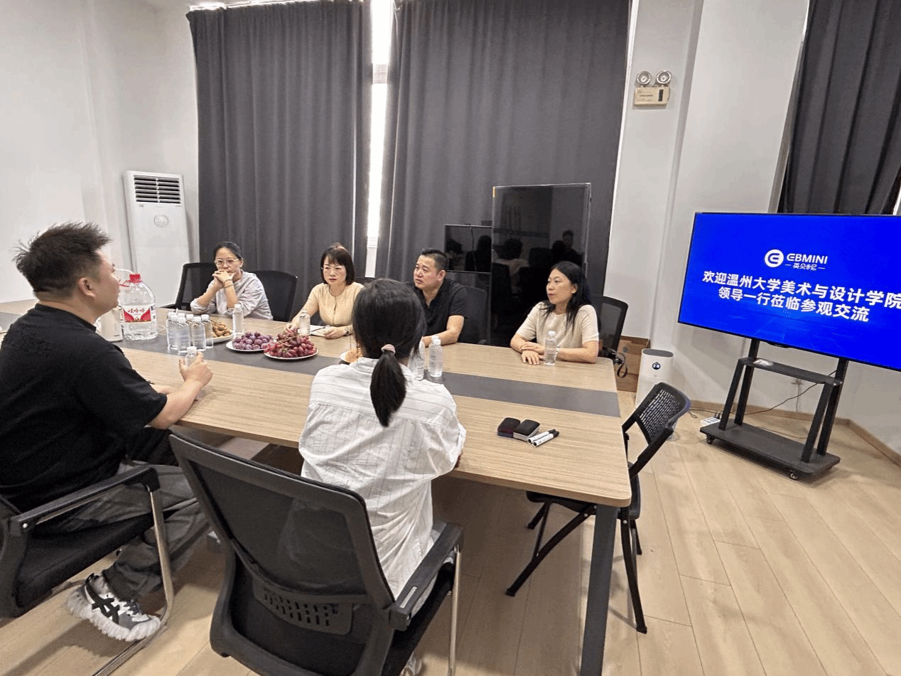 2025 年10月13 日,温州大学美术与设计学院学院教师一行赴温州英贝米尼贸易有限公司开展“访企拓岗”专项活动,围绕品牌设计研发人才培育、校企合作模式等议题展开深入交流,共谋产教融合新路径。