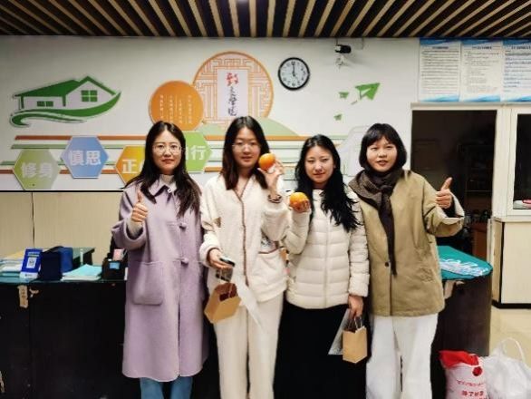 岁末寒意渐浓,考研的征程也进入了最关键的冲刺阶段。为鼓舞正奔赴梦想的2026届考研学子,传递学院的温暖陪伴与深切祝福,12月17日下午,超豪学区先锋党支部发起“暖冬研途·逐梦同行”暖心活动,学院各学生支部党员、志愿者共同参与。 毕业生公寓楼下,身着红马甲的志愿者们早已就位,将一份份寓意深远的礼物细心分装、摆放得井井有条。贺卡藏着手写的祝愿,是“落笔有回响”的美好期许;分装袋收纳着点滴心意,寓意整理思绪、从容应考;金黄的橙子,谐音“成”功,寄托着心想事成、硕果累累的美好祝愿;小巧的多肉盆栽,象征着考研路上的耐力与执着;简约的台历,静静伫立,提醒着时光有序,步履不停。、活动在温馨而简洁的仪式中拉开序幕。同学们陆续前来,从志愿者手中接过这份暖意融融的礼物袋,眼中闪烁的是惊喜,亦是感动。方寸贺卡,笔墨传情,既是初心也是星光;一袋温暖,收纳从容,既是整理也是陪伴;青青多肉,寂静生长,既是坚持也是希望;一页台历,时光可见,既是规划也是陪伴;橙香满怀,心想事成,既是祝福也是硕果。愿这份心意,凝聚成一股“你不是一个人在战斗”的坚实力量,让紧张的冲刺阶段,多一份从容与温度。