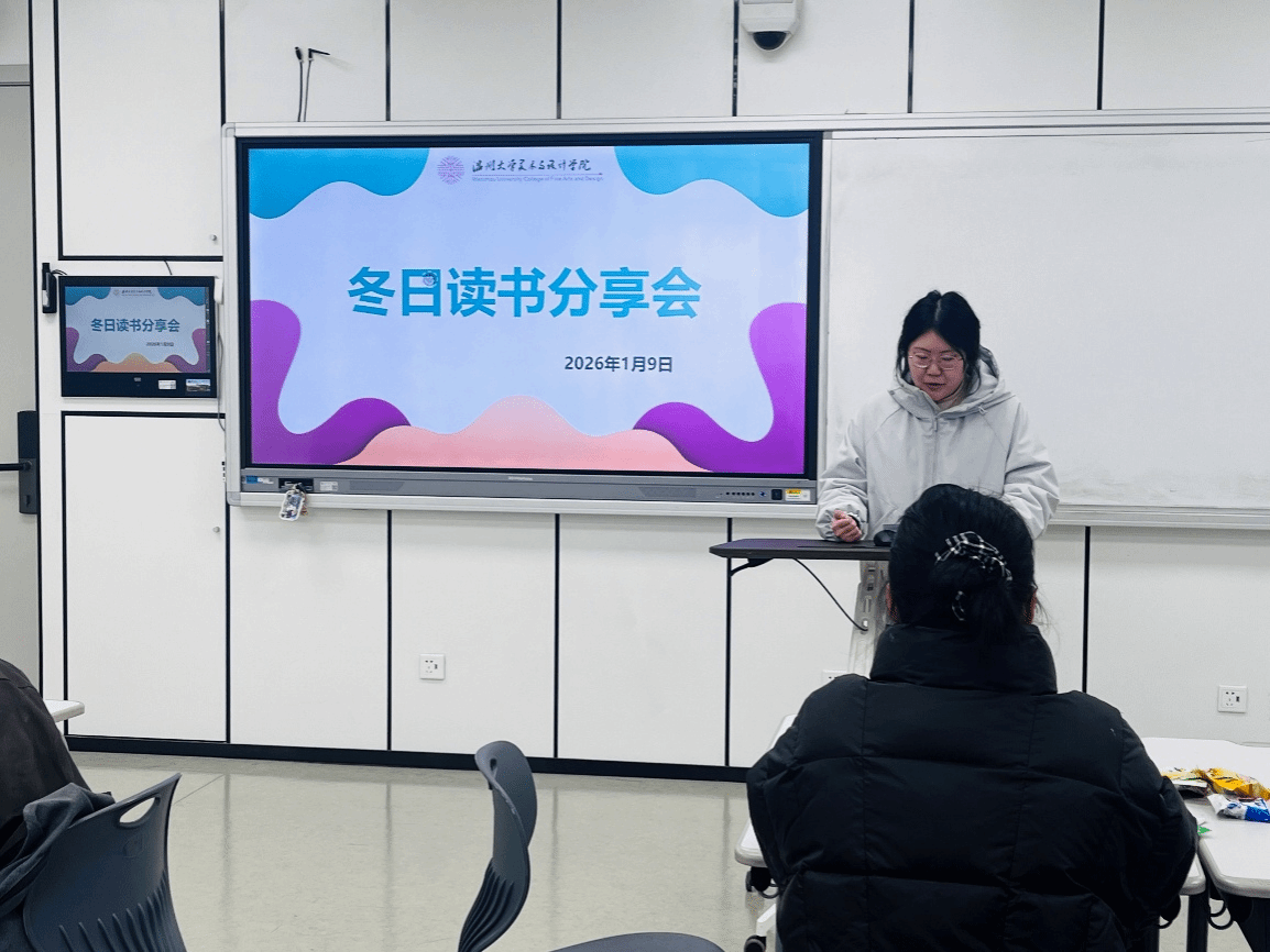 朔风清冽,却吹不散室内氤氲的书香。美术与设计学院2026年冬日读书分享会,在美术楼2B3001温暖展开。这场以“暖冬雅集,共品书香”为主题的活动,仿佛为忙碌学业中的心灵开辟了一处宁静的港湾。在这里,同学们暂别笔纸与屏幕,沉心静思,于文字间寻一份温暖与智慧,在交流中拓一片视野与共鸣——寒冷冬日,因而浸润了浓厚而亲切的书香气息