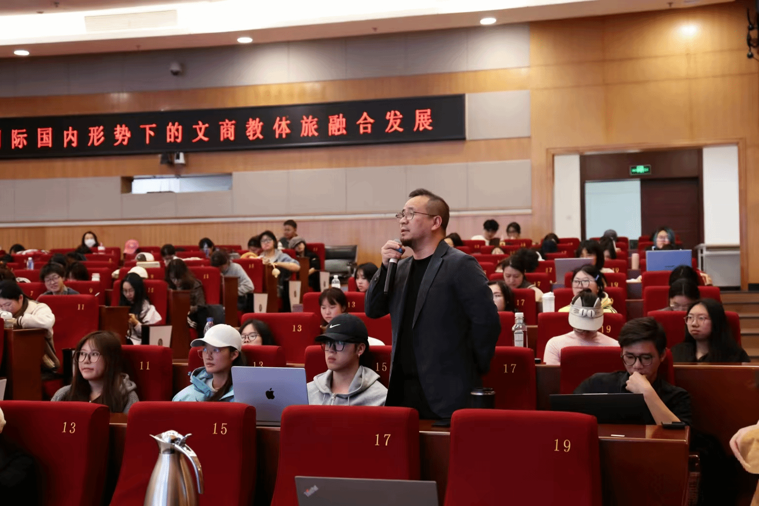 互动交流环节,现场师生热情高涨,围绕“设计与乡村振兴的结合路径”“AI技术在文旅发展中的应用前景”“艺术生就业创业的新赛道与新机遇”等议题踊跃提问,与张志宏巡视员展开深入交流。张志宏巡视员耐心细致解答,与大家展开了深入的交流与探讨。