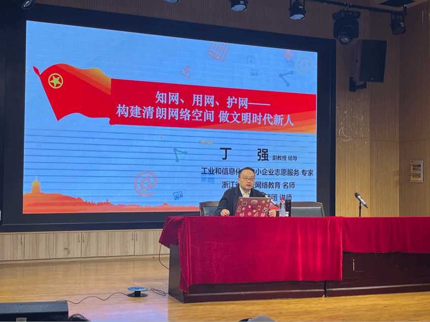 正如丁强老师所讲,我们作为网络时代的“原住民”,更应该去学习如何与它共处。 讲座主题关键词“知网、用网、护网”,提示青年学生面对网络时代这一不可逆的历史潮流时,唯有保持清醒的头脑和强大的自制力,才能驾驭这股力量,让它真正为我们的成长和社会的进步服务。