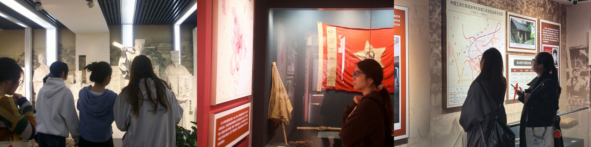 活动第一站,师生党员们走进温州城区革命历史馆,在珍贵的历史图文、影像资料与实物展品中,重温浙南地区波澜壮阔的革命历程。展馆以“思想之光 革命之火”“艰苦斗争 曲折前进”“抗日战争 激流勇进”“全面胜利 和平解放”四大篇章为脉络,完整展现了从1924年中共温州独立支部建立,到1949年浙南全境解放的25载峥嵘岁月,生动讲述了温州革命先辈们为民族独立、人民解放抛头颅、洒热血的英雄事迹。