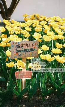 3.春日来信,郁金香是信封 ,而这块木牌,是温州小朋友写给春天的小情书。