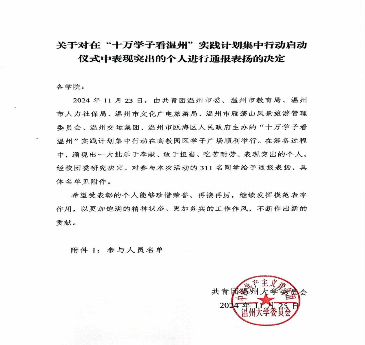 作为“十万学子看温州”志愿者代表,忙碌了一整天,看着各个社团顺利圆满举办活动心里无比开心。以优秀志愿者被全校通报表扬。;
