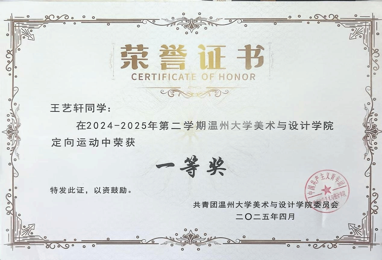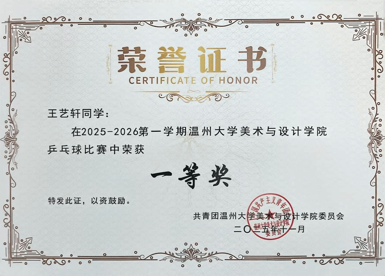 个人简介姓名:王艺轩班级:23视觉传达设计1政治面貌:中共预备党员职务:温州大学指尖爱公益摄影协会部长、D6楼层长、24环设班主任助理等职务个人荣誉:各类证书累计90余项入校以来绩点、综测排名均为专业第一最高学期绩点4.49,最高课程绩点5.0连续两年获得省政府奖学金、校级一等奖学金、三好学生参与国家级大创一项,主持省级大创一项获第五届全国大学生乡村振兴大赛国家级金奖获第五届全国大学生乡村振兴大赛苍南专项赛国家级二等奖获第二届“两山杯”全国大学生乡村振兴大赛国家级二等奖获第三届“两山杯”全国大学生乡村振兴大赛创业赛道优秀奖获第十三届浙江省大学生摄影竞赛二等奖获第二十四届浙江省大学生多媒体作品设计竞赛二等奖获第八届“建行裕农通杯”浙江省大学生乡村振兴创意大赛铜奖三星级志愿者,累计志愿服务600余小时,5次通报表扬体育缘起 自小学时起,运动便成为我成长路上的重要伙伴:凭借出色的奔跑速度入选校田径长跑队,代表学校征战运动会;后因跳高特长转型投身跳高项目训练。初中就读期间,受校园浓厚足球氛围熏陶,我加入校足球队,在绿茵赛场锤炼拼搏意志。进入大学后,我在保持艺术专业学习的同时,从未停歇运动的脚步。健美操课程取得98分,气排球课程中也收获颇丰,取得99分的成绩;在体能赛场上,我跑出800米3分04秒、50米7秒4的成绩,体测最高得分达106.4,体育模块更是斩获100分。艺术的细腻与运动的活力,让我在成长路上不断突破自我。 。。。大学经历入学至今参加也组织过很多比赛:羽毛球比赛、荧光夜跑、定向运动比赛、健美操比赛、乒乓球比赛、跳高等等。获得过2024 温州大学第四十七届运动会健美操比赛甲组团体三等奖、2024 美术与设计学院趣味运动会二等奖、2024 温州大学运动会跳高第八、2025 年美院定向运动一等奖、2025 年 11 月温州大学健美操甲组团体三等奖、2025 年 11 月温州大学美术与设计学院乒乓球一等奖等体育精神的延展 运动于我而言,从来不止于赛场上的成绩与奖牌,更像是一种刻入成长轨迹的生活态度与精神底色,在专业学习、公益实践与团队协作中不断延展其深层价值。体育教会我的 “坚韧与专注”,田径训练中顶住乳酸堆积的坚持、跳高赛场上突破个人极限的执着,我始终以 “不放弃、不松懈” 的运动精神深耕项目,最终促成成果落地并斩获多项赛事荣誉。艺术创作需要灵感迸发,更需要长期的沉淀与打磨,而体育训练中培养的耐力与专注力,让我能沉下心打磨每一幅设计作品、优化每一个创意方案。体育传递“协作与担当”,与足球赛场、健美操团体赛中 “一人为众,众为一人” 的协作理念高度契合。累计 600 余小时的志愿服务中,无论是马拉松赛事保障,还是乡村公益拍摄,体育赋予我的体能优势与抗压能力,让我能在高强度的志愿工作中始终保持热情与高效,5 次获得通报表扬,用行动诠释 “奉献、友爱、互助、进步” 的志愿精神与体育精神的共通之处。体育涵养的 “突破与包容”,塑造了我开放多元的成长格局。从小学田径队的长跑选手,到初中足球队的绿茵健儿,再到大学在跳高、健美操、乒乓球等多个项目中探索,运动让我学会不断跳出舒适区,拥抱新的挑战。这种 “敢尝试、不怕输” 的心态,促使我跨领域学习,既深耕视觉传达设计专业,又积极参与乡村振兴、思想政治等各类赛事与活动,在多元体验中拓宽视野、提升综合素养。同时,运动中的输赢教会我坦然面对得失,胜不骄、败不馁,这种心态让我在面对学习科研中的困难、学生工作中的压力时,始终保持积极乐观,以坚韧的毅力攻克一个又一个难关。展望未来站在新的成长起点,我将继续以体育为翼,在艺术追求、社会责任与个人成长的道路上坚定前行,让体育精神成为终身受益的宝贵财富。在个人成长中,我将始终坚守体育精神的内核,以 “坚韧、协作、包容” 的心态面对未来的机遇与挑战。无论是继续深造还是步入社会,都将保持运动赋予的自律与活力,平衡好工作与生活,以健康的体魄、饱满的热情迎接每一个新的挑战。同时,不断传承和发扬体育精神,在团队中主动担当、积极协作,在困境中永不言弃、奋勇争先,用实际行动诠释新时代青年的责任与担当,努力在实现个人价值的同时,为社会发展贡献自己的一份力量。未来,我将继续做体育精神的践行者、传播者,让艺术与运动碰撞出更多火花,在追逐梦想的道路上,始终保持热爱、奔赴山海,书写更加精彩的人生篇章。初审:李湘 复审:石建林 终审:叶如芳