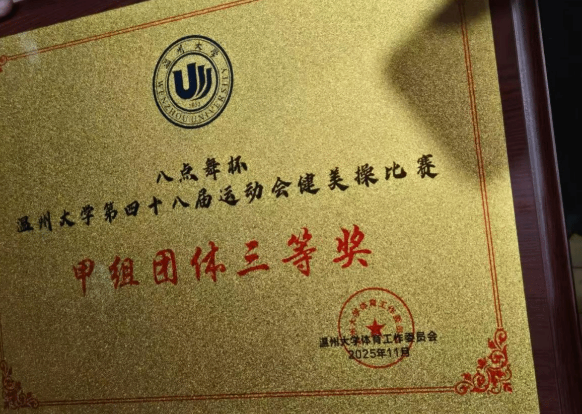 入学至今参加也组织过很多比赛:羽毛球比赛、荧光夜跑、定向运动比赛、健美操比赛、乒乓球比赛、跳高等等。获得过2024 温州大学第四十七届运动会健美操比赛甲组团体三等奖、2024 美术与设计学院趣味运动会二等奖、2024 温州大学运动会跳高第八、2025 年美院定向运动一等奖、2025 年 11 月温州大学健美操甲组团体三等奖、2025 年 11 月温州大学美术与设计学院乒乓球一等奖等