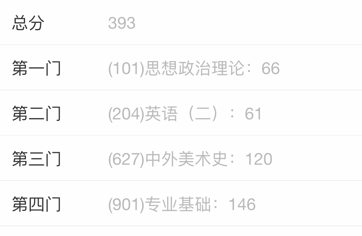 学弟学妹们好!很荣幸给大家分享一下关于我上岸温大美院的个人经验,内容针对于温州大学,不一定百分之百适合每个人,但希望能给备考的你们一些启发。如果有其他问题,大家可以咨询我,我很乐意为大家解答。如何平衡专业课与公共课的核心思想:我的观点是专业课定高度,公共课定成败。专业课分数占比高,拉开差距、决定你能否过线。因此你的目标是冲击高分。公共课的政治、英语则是“底线科目”。它能无法让你一骑绝尘,但一旦不过线,直接game over。因此你的目标是保底过线,争取不拉分。基于以上认知,平衡的核心就在于:在不同备考阶段,调整两边的精力投入,确保公共课不落下,专业课能拔高。我的分数结构:一.整体时间分配和资料清单1-3月:英语:记单词(100/天,《词汇的逻辑》)。专业课:了解规定的参考书。温州大学627专业课有两本书,分别是《中国美术史简编》,《外国美术简史》。3-5月:英语:多练长难句,这个很重要,是读懂阅读理解的基础。(扇贝APP中有长难句练习,可以下载)开始精读阅读真题,3天1篇。专业课手绘:可以偶尔练习一下线描,增加造型能力,为之后打基础。6-8月:英语:记单词与刷阅读真题同步进行,阅读每天一篇,量不重要,明白自己错哪了很重要。政治:徐涛网课,个人喜欢轻松的学习方式,其他科目学累了就可以看看徐涛的上课视频。专业课:开始一二轮美术史学习。树立时间框架结构很重要。背完一章的知识点,再去复习背诵前一章节,帮助记忆。手绘:八月份是手绘冲刺阶段,三天画两张,线条很重要。一定要画精细。(考研院校老师喜欢精细画面)9-10月:英语:阅读继续精读、记忆单词,并开始准备作文。其它题型可以按照自己的情况选择做不做。政治:跟课的同时开始刷题。练习选择题为主。专业课:我背了3遍,搜集往年的真题,开始练题,明白答题的结构,清晰明了的回答很重要,如果学习时间不够的话可以脑子里构思回答。手绘:练习保持手感11月:英语:每天继续单词记忆,继续精做阅读,重点逐渐放到作文。政治:继续刷题选择题(肖八)。专业课:完成4遍背诵,刷题可以多一点,要注意时间分布,看到题目脑子中就有答题方向很重要。12月:考研内容是学不完的,你总会发现自己还有没掌握的知识点,所以这时候你要放轻松,心态很重要。英语:记不熟悉的单词、背诵作文、刷阅读总结经验、控制答题时间。(阅读来不及做是大忌)。政治:选择题(肖八),大题(肖四) 肖八去买苏一的解析超级有用!专业课:查漏补缺、给自己进行模拟考。手绘:控制作画时间三小时,画精细,准备创作说明 二.我的每日时间表Ps:警惕"假努力":在图书馆12小时不是有效学习,要学会短时间高效。别有作息焦虑,我从来不认为早起就能上岸,我自己起的也不早,我大多是九点多起床,你要学会找到属于你自己的节奏。每天睡够,反而效率更高。不要看到别人早起学习就焦虑,大胆屏蔽外界的声音,只和自己赛跑,每个人的目标和制定的计划都不一样,我个人认为研友是非必要条件,不要去和别人做那些无所谓的比较。9:00-10:00英语背单词(我用的是词汇的逻辑+不背单词APP)10:00-12:30专业课一背中外美术史的黄金时间12:30-1:30午餐、午休吃饭+看电视剧下午1:30-2:30英语(题不在多,而在于精,需要逐字翻译,答案解析标重点)下午2:30-4:00政治背诵+习题(苏一肖八的解析真的很有用!)下午4:30-6:00晚餐、散步放空大脑下午6:00-8:00专业课二(隔天一次)练习手绘晚上8:00后自由玩的时间!!三.手绘146分经验分享温州大学考的专业基础是命题草图,要求在三小时内完成一幅草图,并写200字的创作说明。接下来分享一下如何规划考研时间,使手绘拿到140+时间规划前期(暑假前):偶尔进行一下单体人物的练习,确保自己的人物造型没有很大的问题,主要时间还是留给其他考研科目(根据自己空闲时间安排)高强度(7-8月份):暑期对于考研学生是十分宝贵的一个时间段,要好好把握。先画单人照片,画面一定要精细,后期可以适当默写。(根据自身情况,觉得画照片难的话可以直接临摹)大量的临摹会产生质的变化。临摹完人物,临摹一些场景。在小红书上可以搜到一些优秀的作品。然后将人物和背景组合。我刚开始画的非常痛苦,因为不知道怎么构图,也没有积累过元素,不知道要画什么,而且画的很慢,但其实这是每个人必经的过程。根据自己的节奏来,大概四天画两张左右,不需要一直画,每天拿三个小时练习,重要的是要坚持,保持手感。ps:暑期末要开始加快速度,给自己计时,大概三四张完整稿后,速度就可以加快了,最后要保证自己考试时能够三个小时画完一张。稳定保持(9-10月):背模板,然后套模板。先把你临摹的又快又好的场景加上人物布局背下来,然后进行默写,增加小元素。这期间可以单独训练人物的脸和细节的衣纹褶皱,增加画面精细程度,分数再上一层楼!有了前面暑假的基础,这阶段一周一到两张,保持手感,不要生疏。冲刺(11-12月):十一二月份是最后冲刺阶段,各科背诵任务加重,我们手绘已经有不少的积累,这时候就可以把更多的时间留给别的科目,手绘一周一张就足够。手绘本身就是需要日积月累的一个科目,重要是让自己有手感。我在考场上就挺慌张的,但因为练得多都形成肌肉记忆,所以也取得了146这样较为不错的成绩。温大的画面尺寸小,所以一定一定要画精细!四.心法修炼:低谷期,如何自救我经历过两